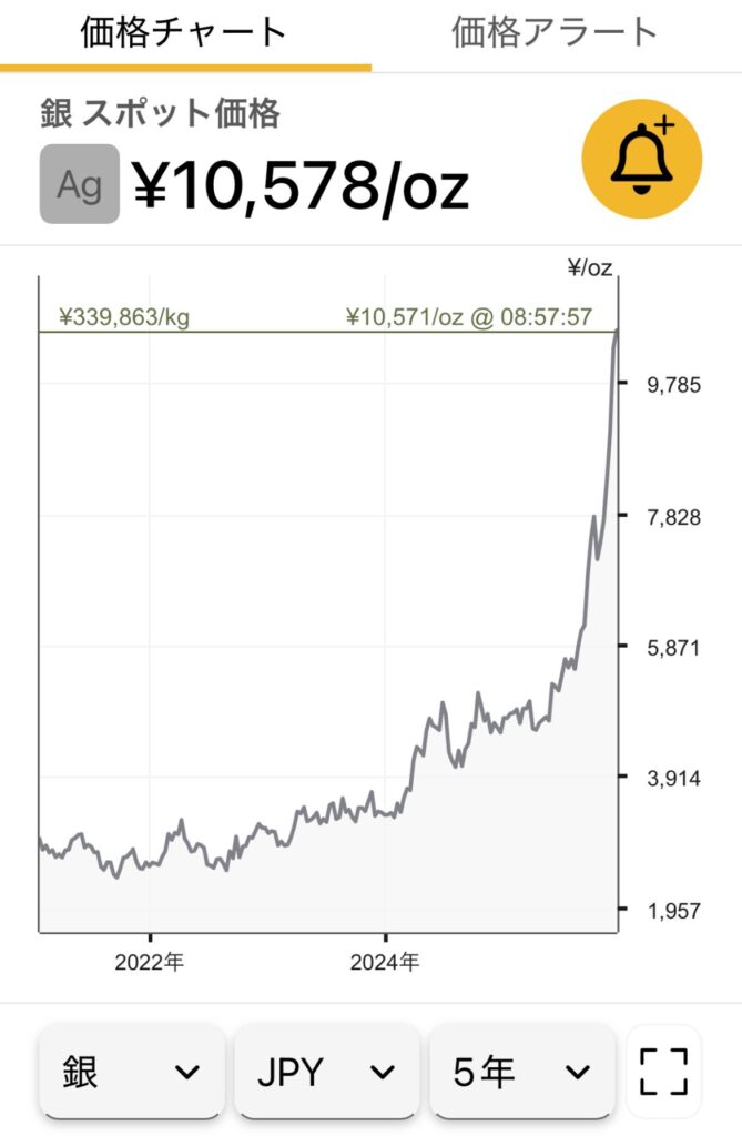 今までは金銀は資産防衛のリスクヘッジとして富裕層に注目されていて、金はリーマンショックとギリシャ危機から高騰を続けて来たが、今は銀だ。
